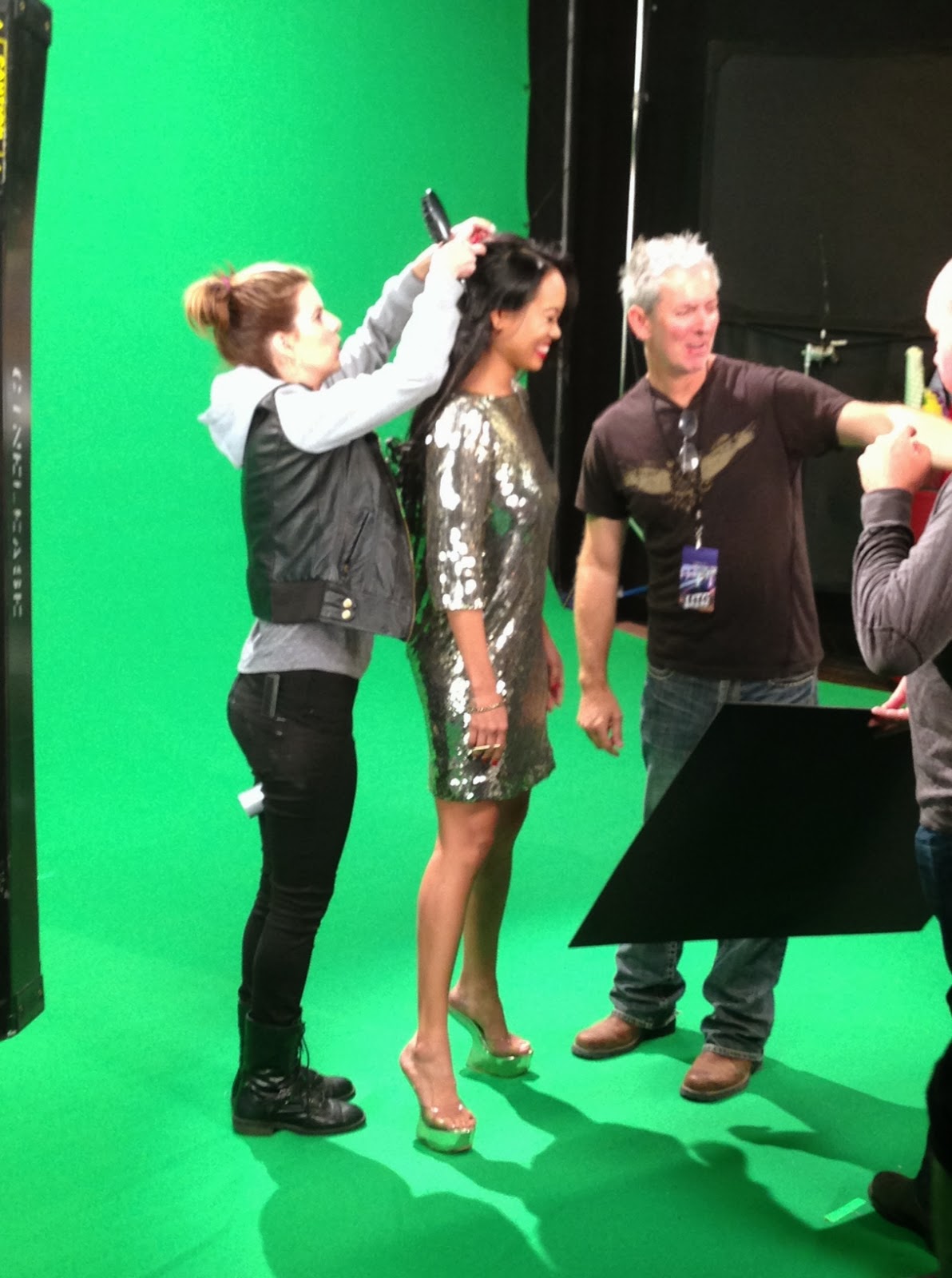 Getting Primped: Anya Ayoung-Chee on the set of the Lifetime Network's "Under The Gunn" Intro Shoot--wearing NIKOLAKI by Nick Verreos/David Paul